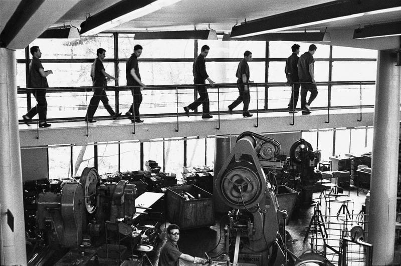 Ma Adriano non si limita ai numeri. Fa costruire fabbriche dall’architettura all’avanguardia, introduce mense, biblioteche, assistenza sanitaria e spazi culturali accanto alle linee di montaggio.