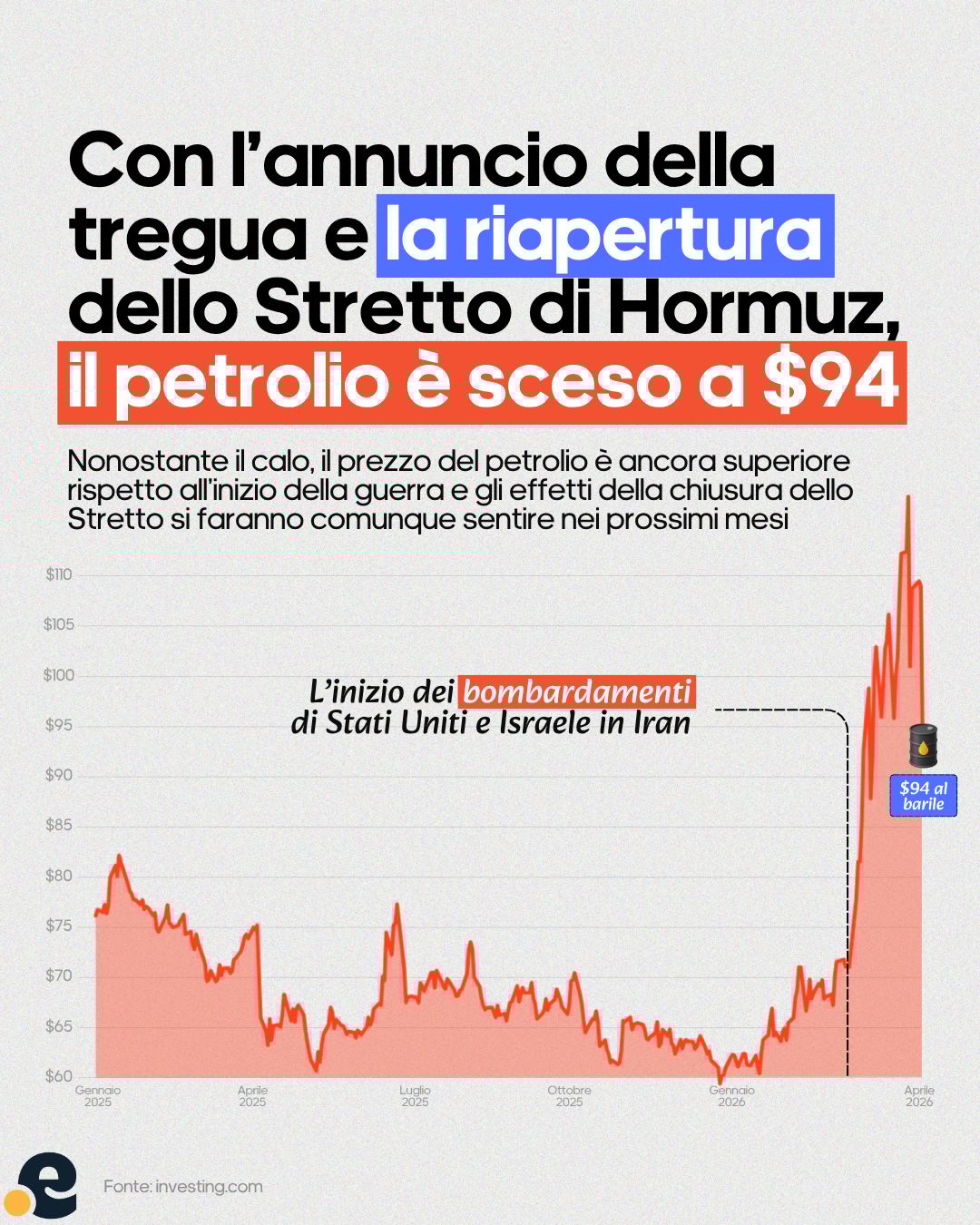 📉 Il prezzo del WTI (riferimento USA) è crollato del 17,6%, scendendo a $93 al barile