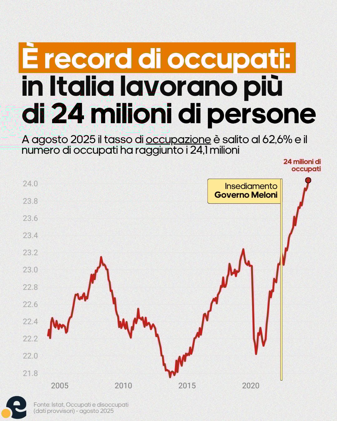 Nel 2024 gli occupati in Italia hanno superato quota 24 milioni e il tasso di occupazione è aumentato, una crescita che sta proseguendo anche nel 2025.