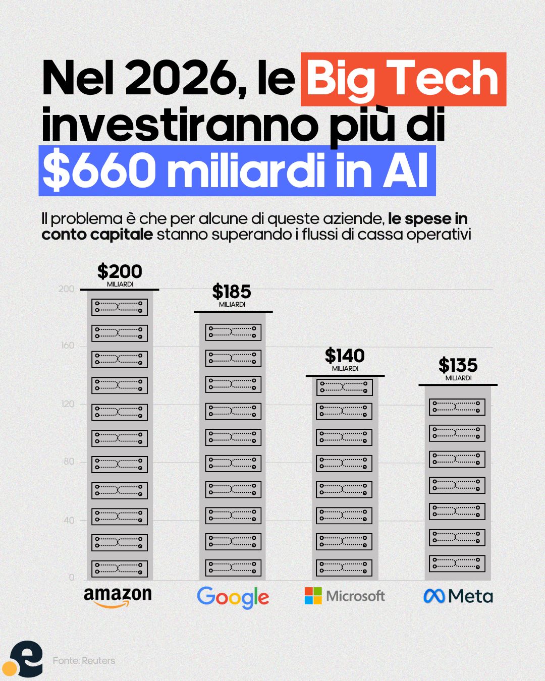 Per il 2026 la guidance sale a $135 miliardi, quasi il doppio dell'anno precedente.