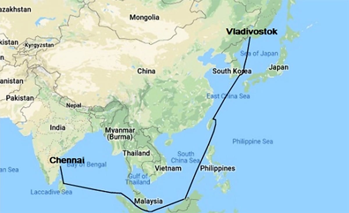 Accanto all’Artico c’è poi un secondo tassello: il Corridoio Marittimo Chennai–Vladivostok, una rotta di 10.300 km che collega il sud dell’India alla costa pacifica russa.