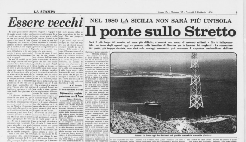 Tutto inizia nel 1969, quando l'Italia è nel pieno del boom economico e il governo Rumor decide di lanciare un concorso internazionale per collegare fisicamente la Sicilia al continente.