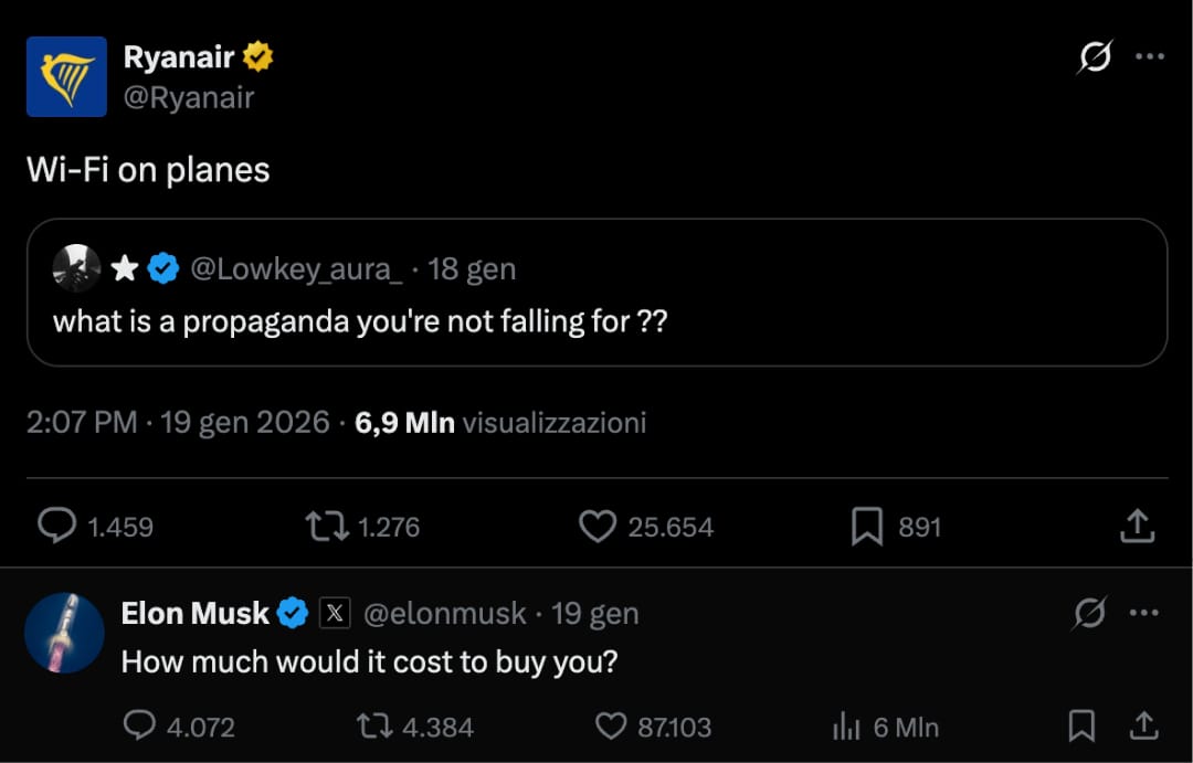 ✈️ Scontro ad alta quota tra Musk e Ryanair